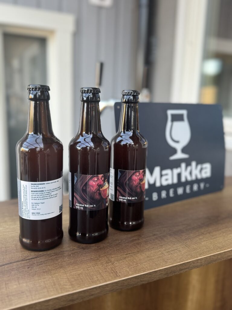 Äntligen så är Markkas etikettsskrivare på plats och vi kan få till en vacker förpackning av vår öl.