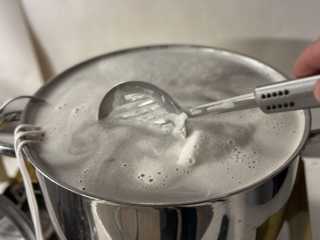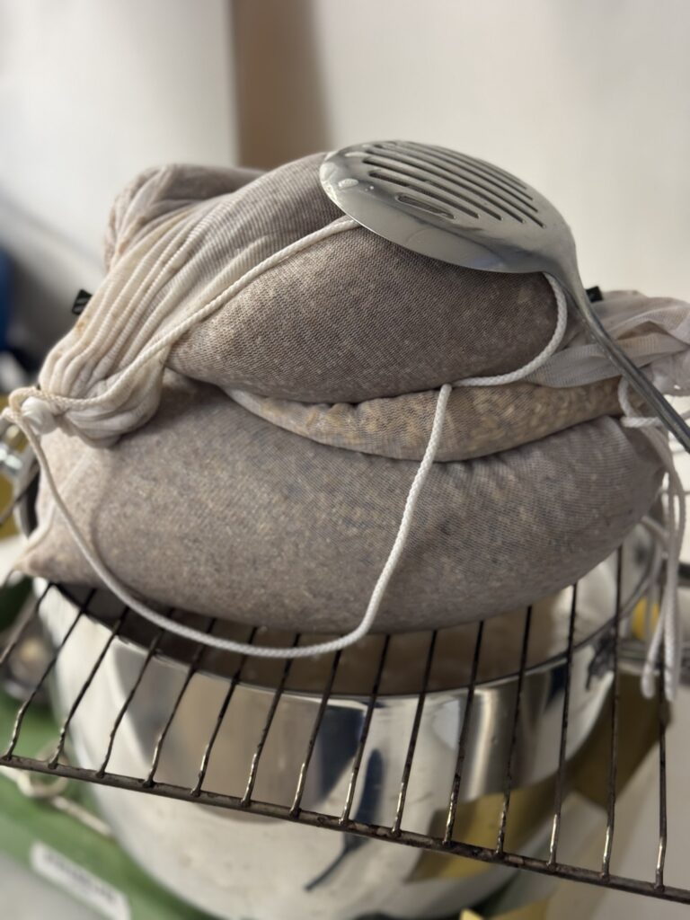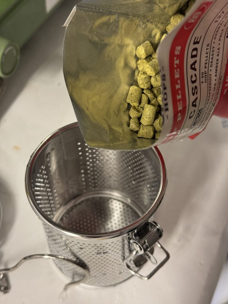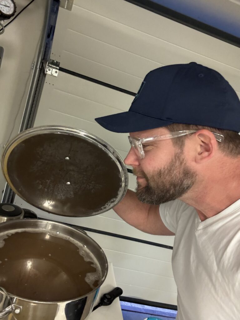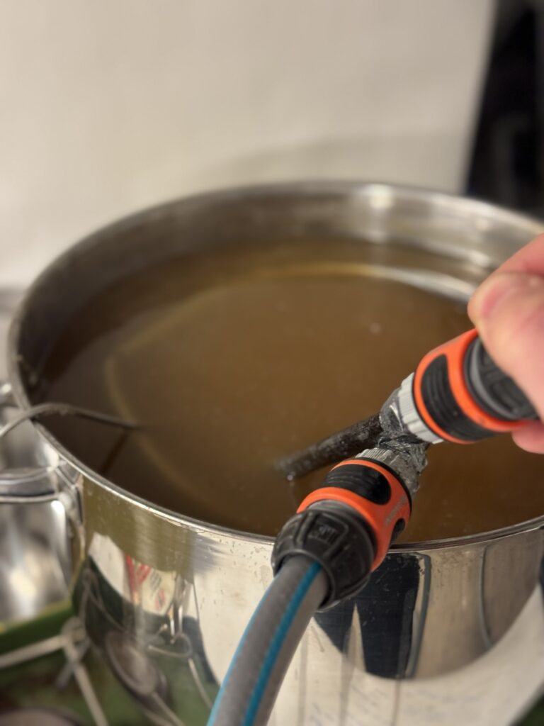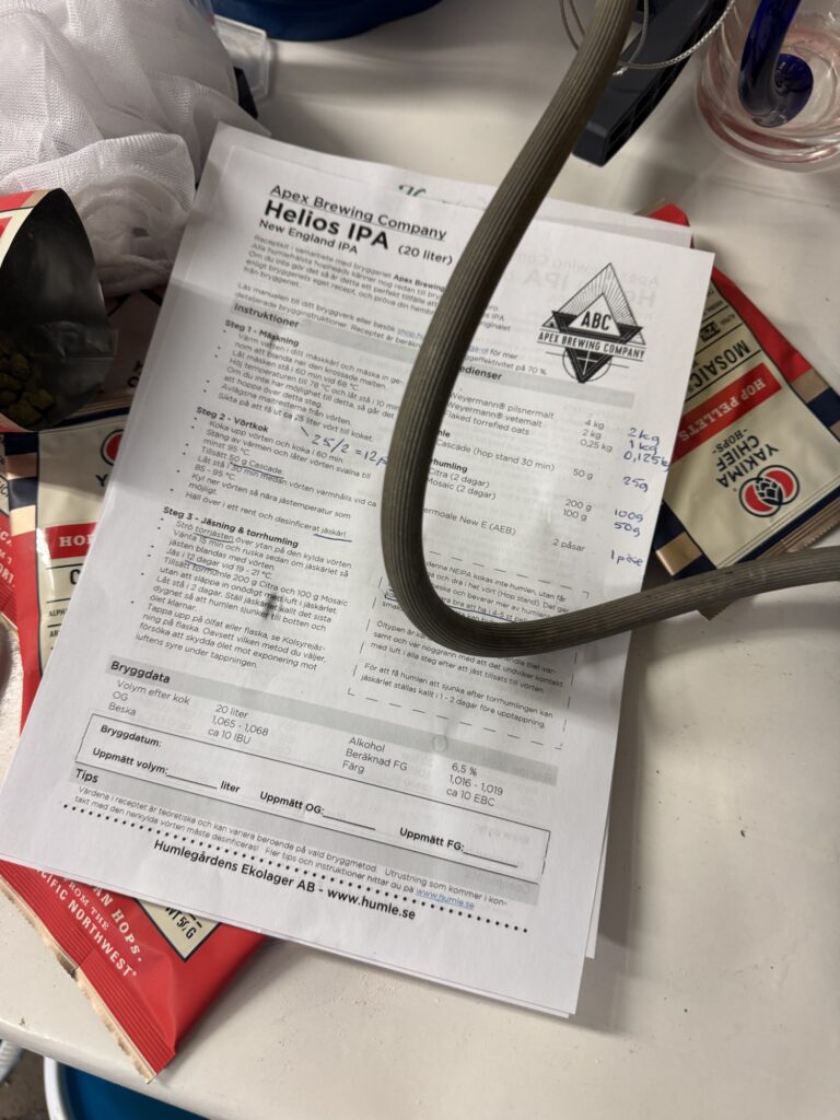 Eftersom att kastrullen inte rymmer 25 liter så blir det bryggning i två omgångar. Men det har gått bra, allt har rullat på enligt plan.